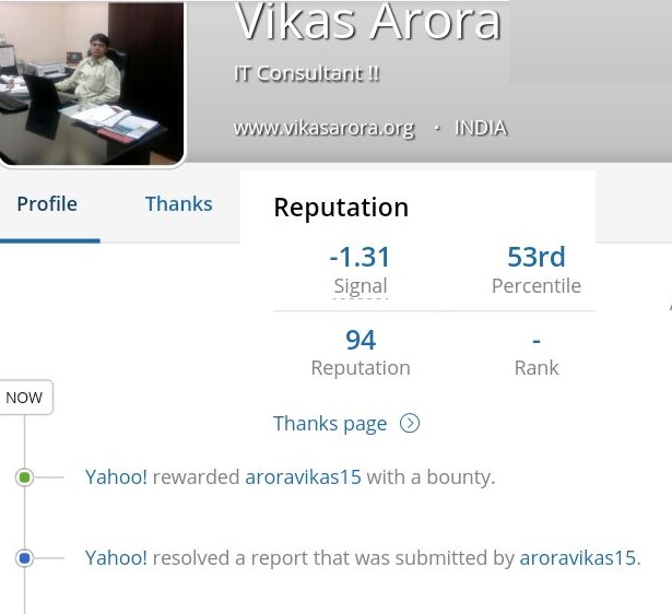 Link - hackerone.com/aroravikas15/thanks