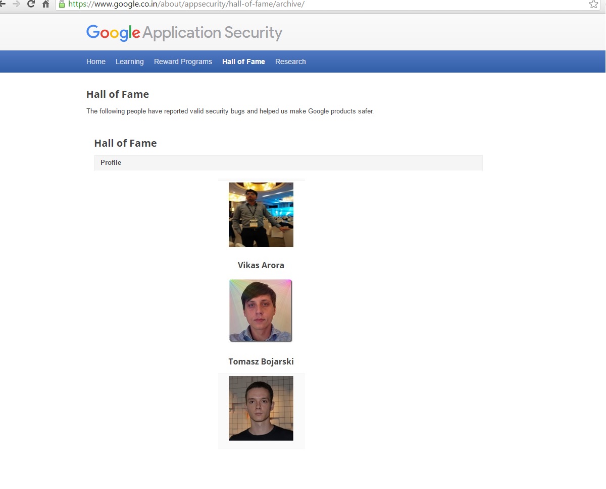 Link -www.google.com/about/appsecurity/hall-of-fame/archive/ .
